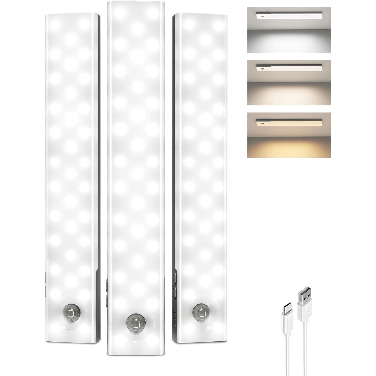 2000mAh Rechargeable Wireless Motion Sensor Light, 3 Color Temperatures, Dimmable, Timer