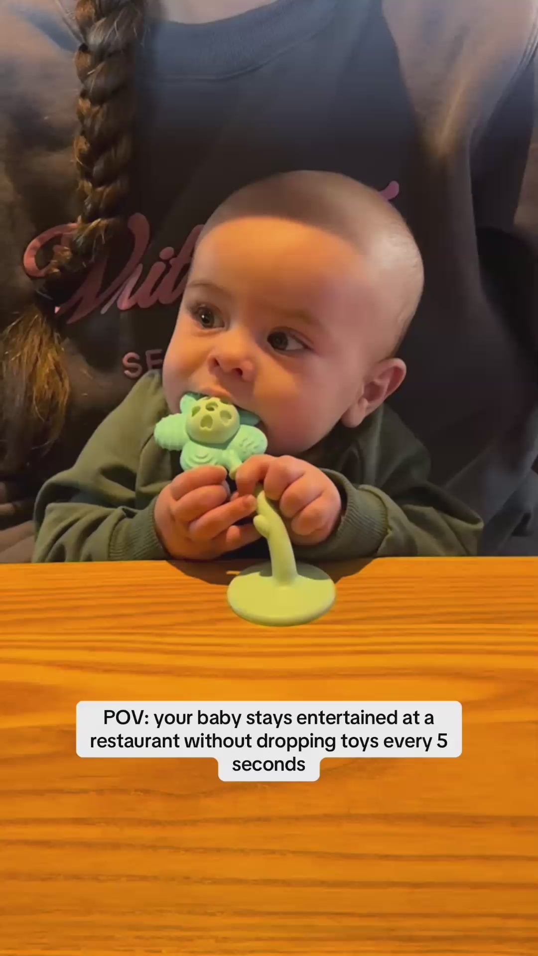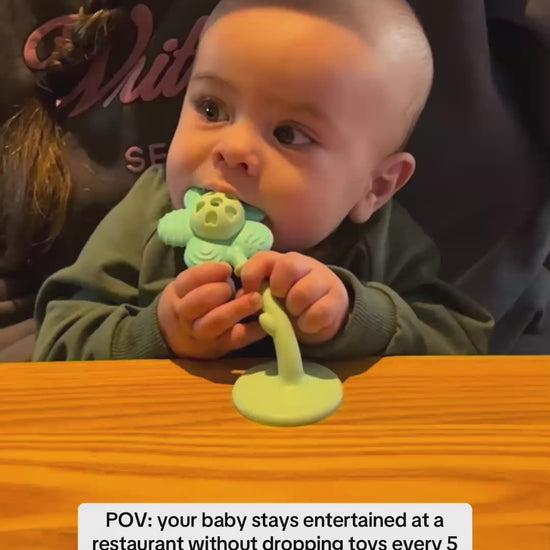 Secure suction keeps the teether firmly in place on smooth surfaces like high chairs and tables, preventing drops and mess.