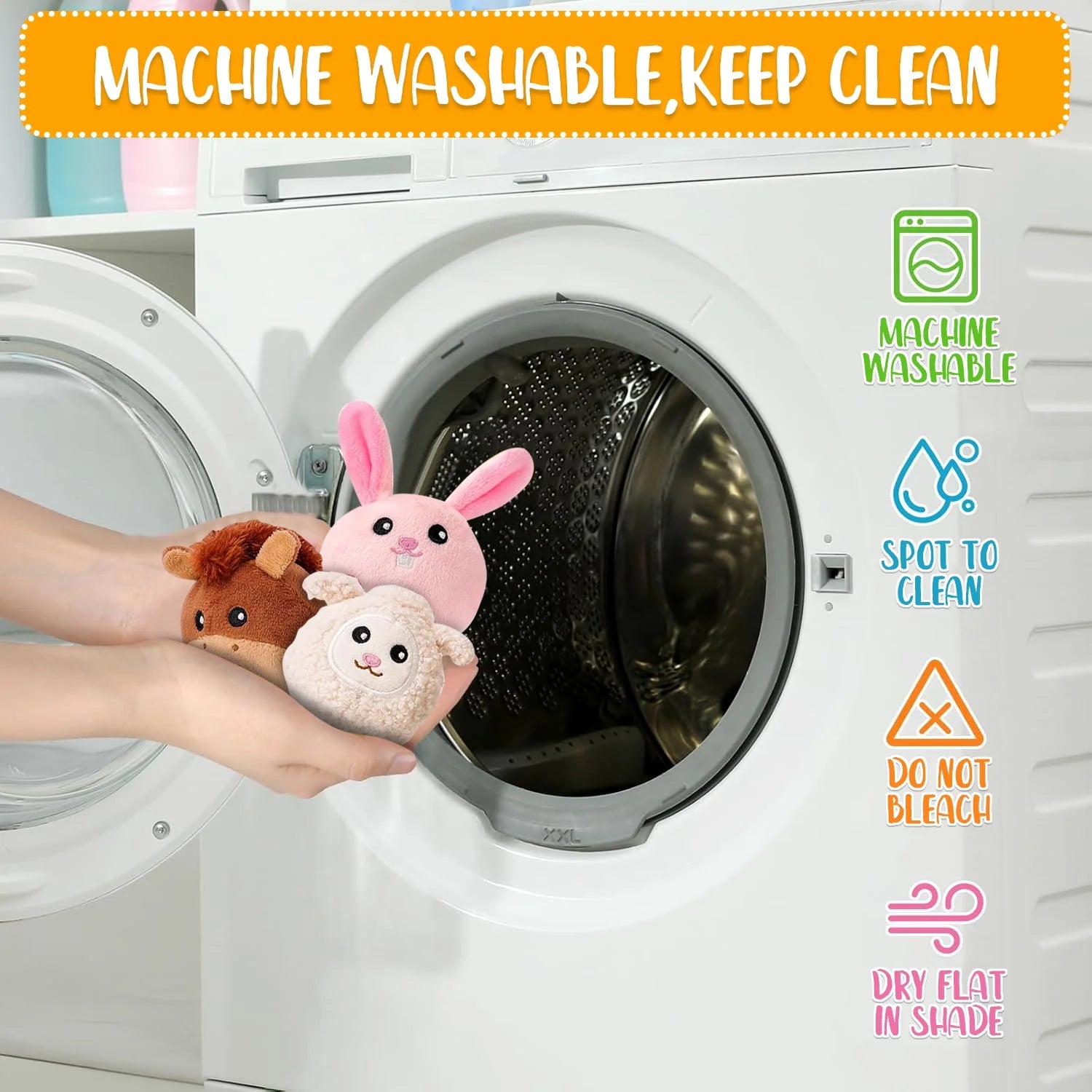 This Surprise Barn Plush Farm Animal Toy Set is perfect for babies aged 6-12 months, featuring a charming barn and 6 cute animals that serve as the gateway to sensory exploration and development. Each animal is designed with a rattle, crinkle sound, and mirror to captivate your baby's curiosity and foster their auditory, tactile, and visual senses.