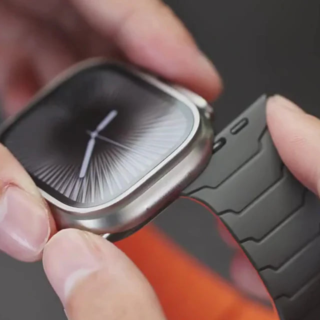 The deep black exterior and vibrant orange interior blend seamlessly, creating a striking visual contrast that adds energy and modernity to your wrist.
