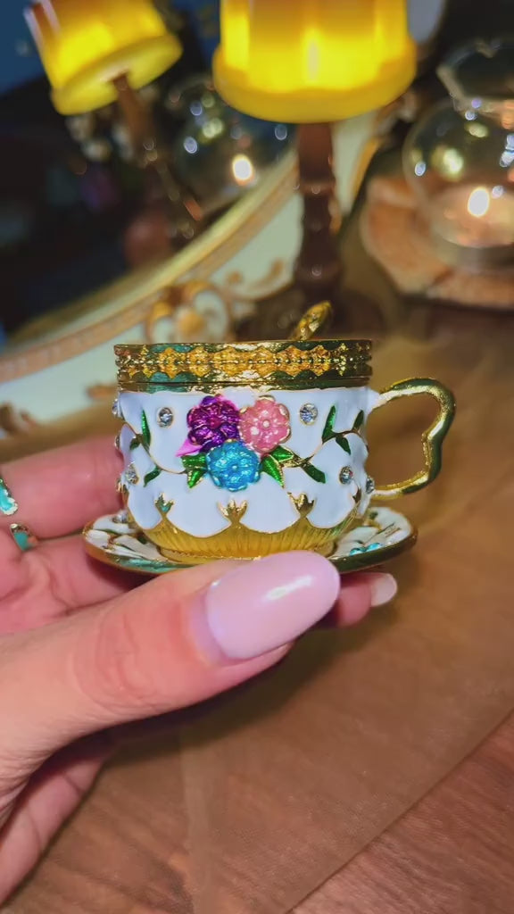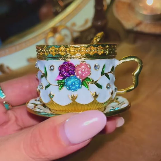 The Collectible Coffee Cup Shaped Hinged Jewelry Box is a charming and functional keepsake designed to store and display small jewelry and trinkets in style. Crafted to resemble a detailed ceramic coffee cup with a hinged lid, this decorative box adds a touch of whimsy and organization to dressers, vanities, or gift collections—merging practicality with delightful aesthetics.