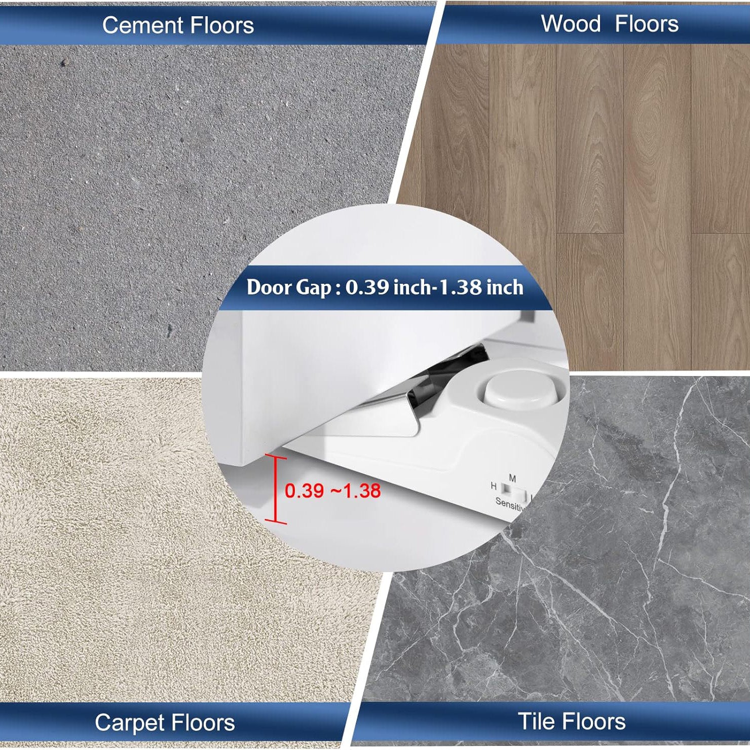 The door stopper has three sensitivity levels: high, medium, and low, which can be adjusted according to the gap between the door and the floor, and the type of flooring, meeting different environmental needs.