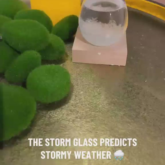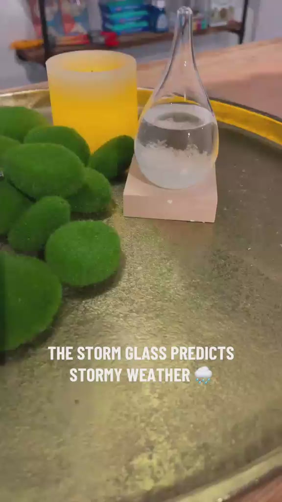 The Storm Glass Weather Station is a beautifully crafted, drop-shaped glass bottle inspired by Scandinavian design. As temperature changes, crystals inside the glass shift into different forms, creating mesmerizing and awe-inspiring patterns. While modern research shows that temperature is the primary factor influencing crystal formation and its correlation with weather is not scientifically precise, the storm glass remains a fascinating decorative piece that adds elegance, curiosity, and charm to any space.