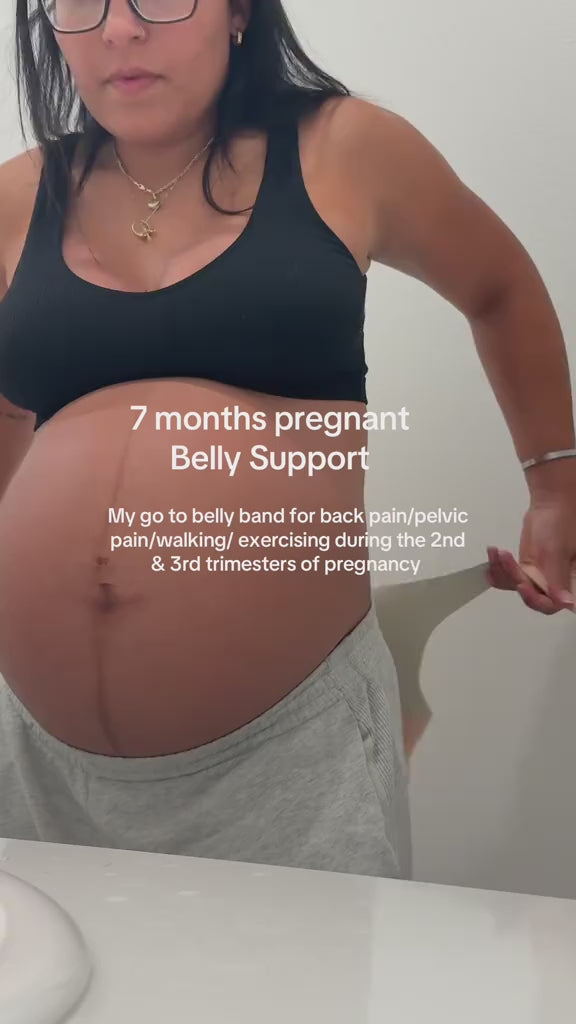 Features adjustable side or back straps (often with hook-and-loop or elastic closures) to customize compression as your body changes throughout pregnancy.