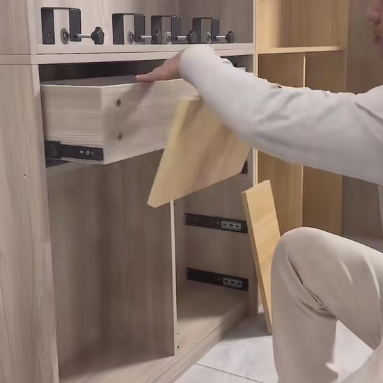 With a maximum clamping width of 2 inches, this clamp is not only for drawer panel installation but also works for tables, workbenches, carts, and fixtures. After securing and aligning cabinet door frames, it doubles as a flexible drilling guide for pre-drilling holes and installing screws.