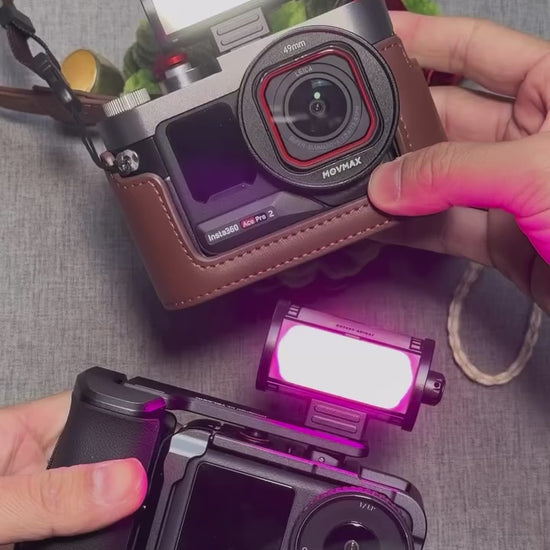 This mini LED camera light combines a retro movie-style design with excellent practicality, suitable for various shooting scenarios. It offers 3 color temperature options to create the perfect lighting ambiance for any shoot. The magnetic cold shoe mount and adjustable angle make it easy to attach to your camera and position for the best lighting, while the efficient charging and long-lasting battery life make it an essential tool for photographers and content creators.