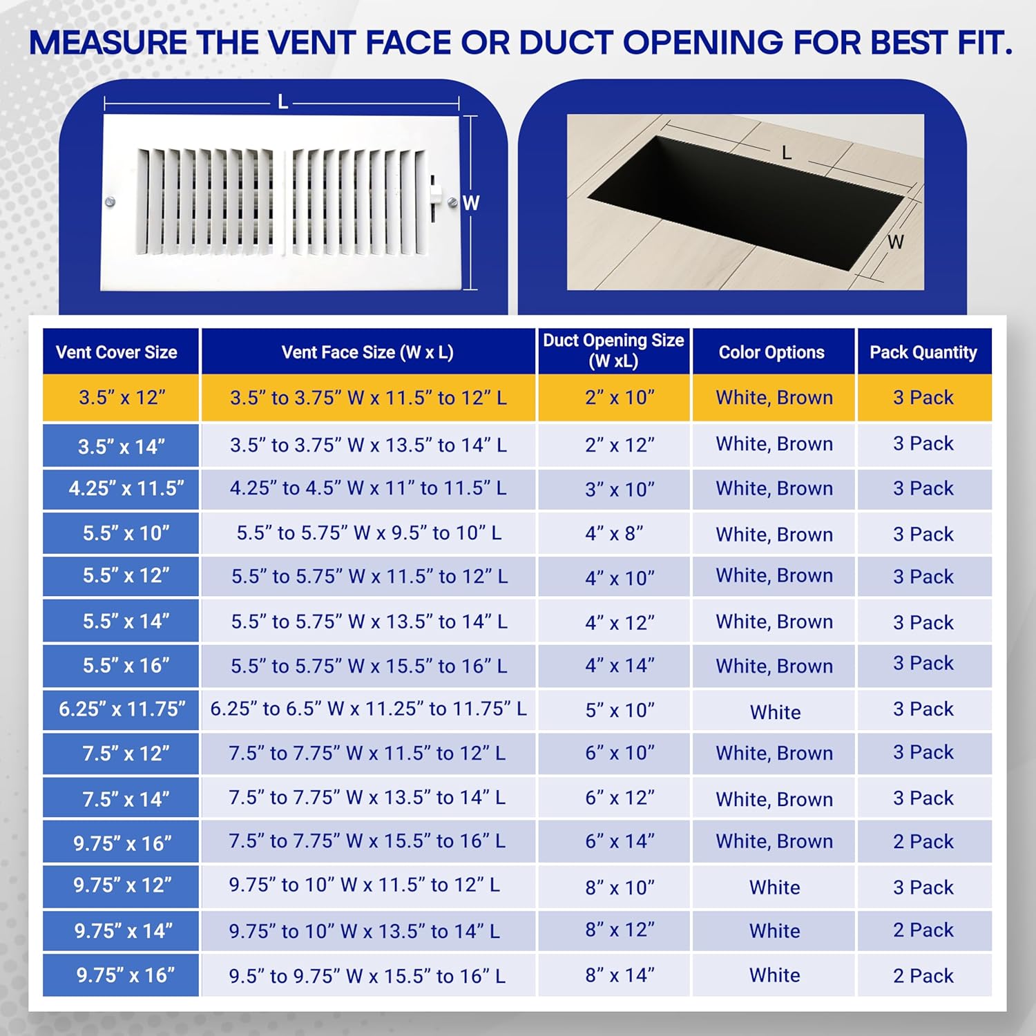 Neutral brown color blends seamlessly with common floor, wall, and ceiling vents, maintaining a clean and unobtrusive appearance.