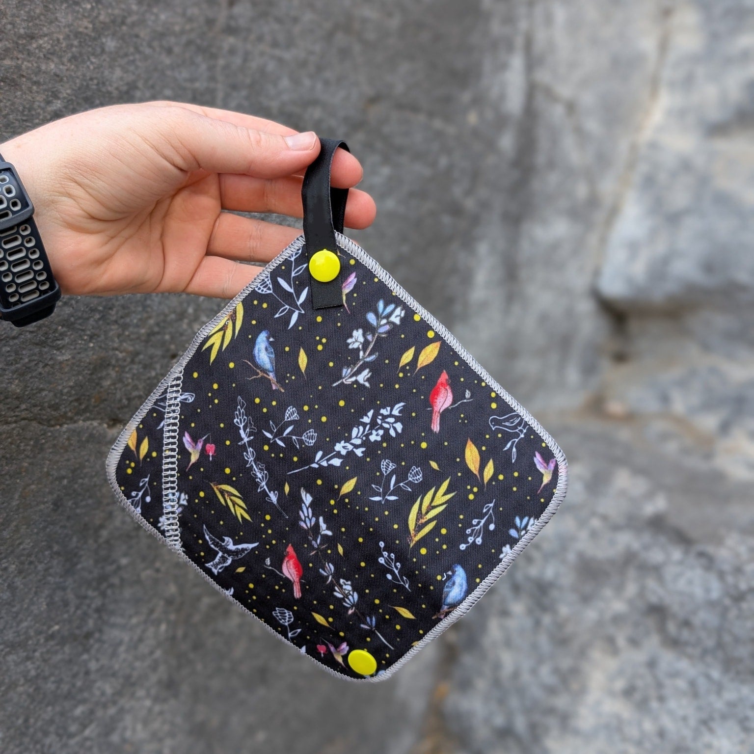 Equipped with a plastic snap button, easily attachable to your backpack for portability.