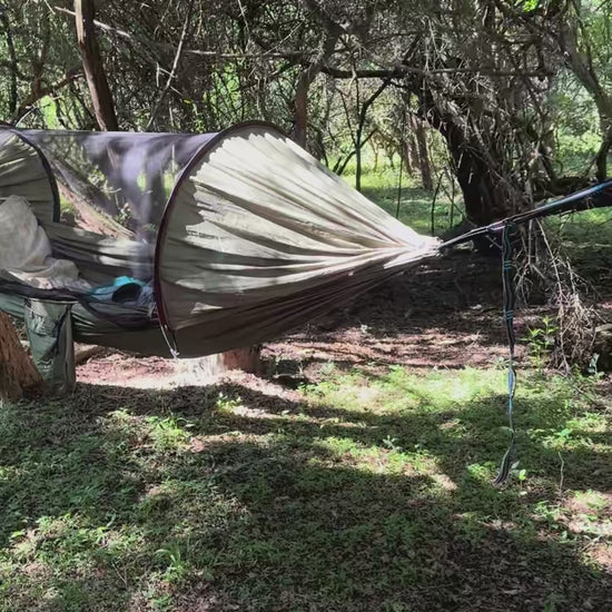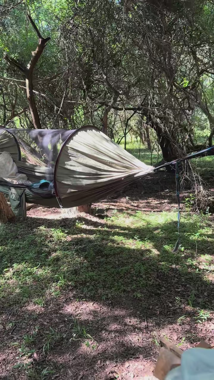 Equipped with a built-in mosquito net to prevent insect bites and ensure proper ventilation. If you don’t need the mosquito net, simply rotate it 180 degrees to use it as a regular hammock.