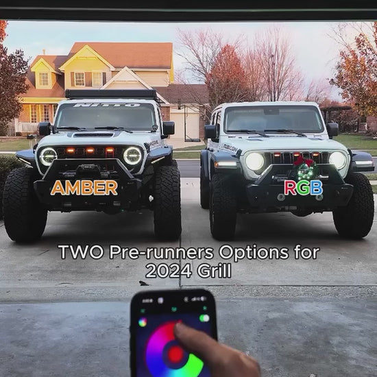 The Prerunner Amber/RGB Grille Lights for 24-25 JL/JT Grilles deliver powerful, multi-functional illumination designed specifically for modern Jeep Wrangler JL and Gladiator JT models. Combining rugged off-road performance with customizable RGB color options, these grille lights enhance visibility, style, and safety—making them an ideal upgrade for overlanding, trail driving, night adventures, and custom vehicle builds.