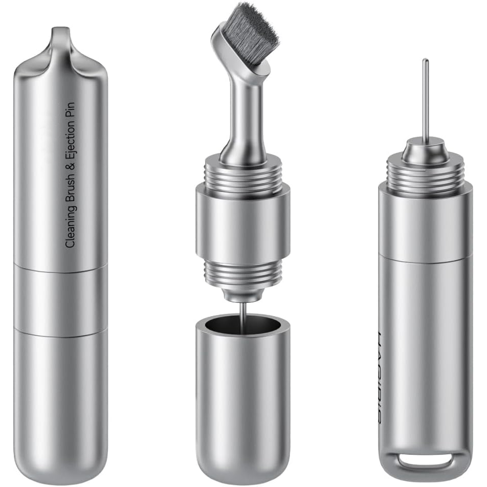 This compact multi-function tool combines a SIM card eject pin with a soft cleaning brush for everyday device care. Designed for phones, earbuds, and small electronics, it offers gentle cleaning and practical functionality in one portable accessory.